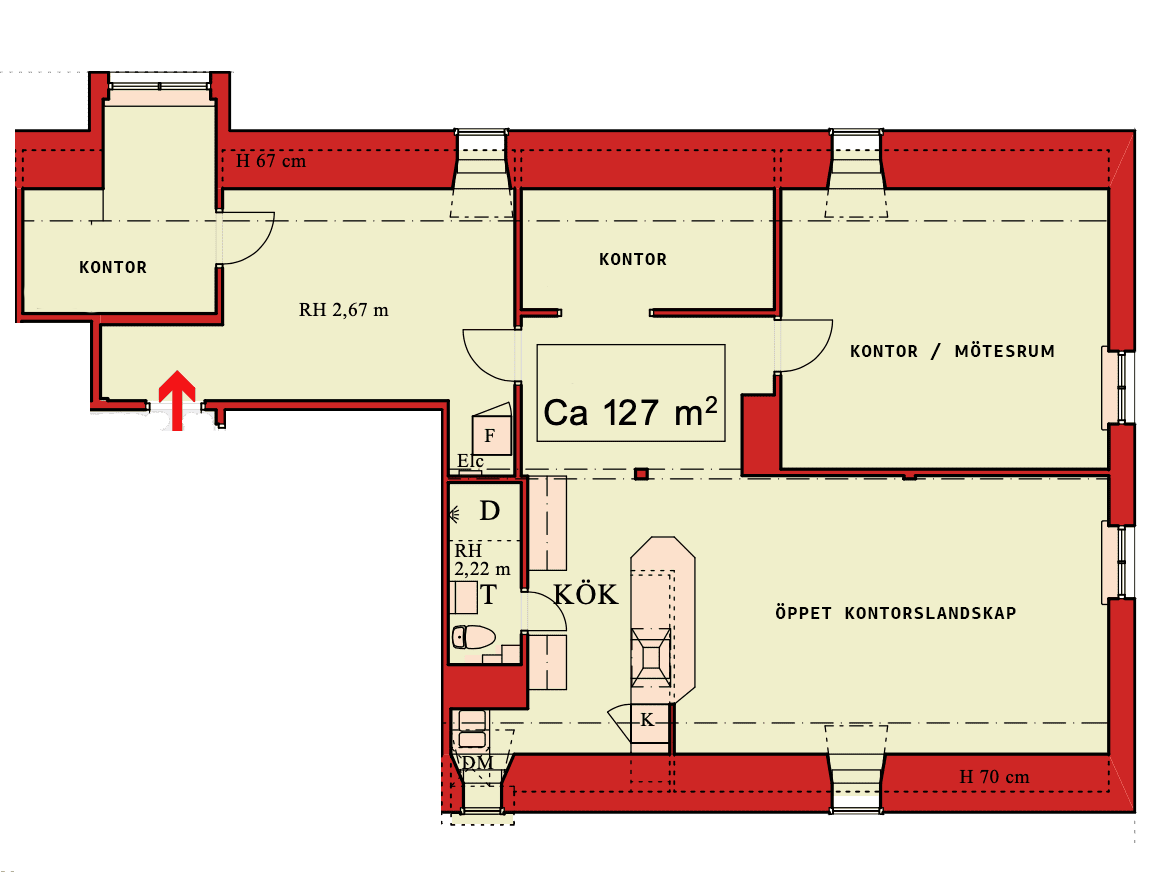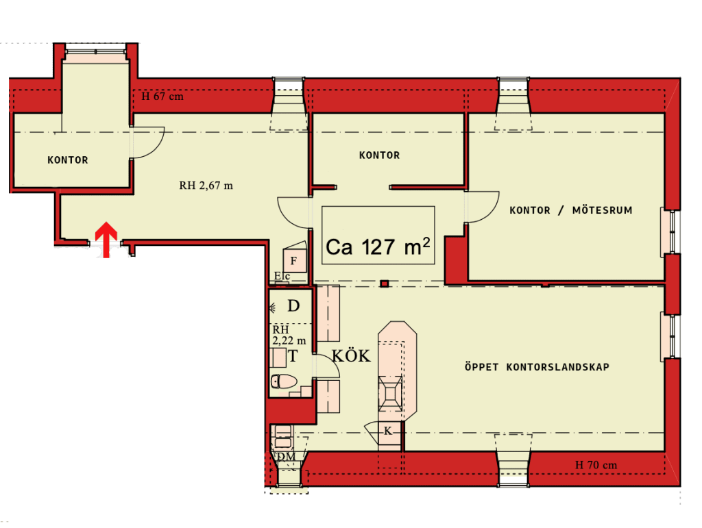 Nu finns möjlighet att hyra en välplanerad och flexibel kontorslokal om ca 127 m², perfekt för företag som söker en funktionell arbetsmiljö med både gemensamma ytor och enskilda arbetsrum.