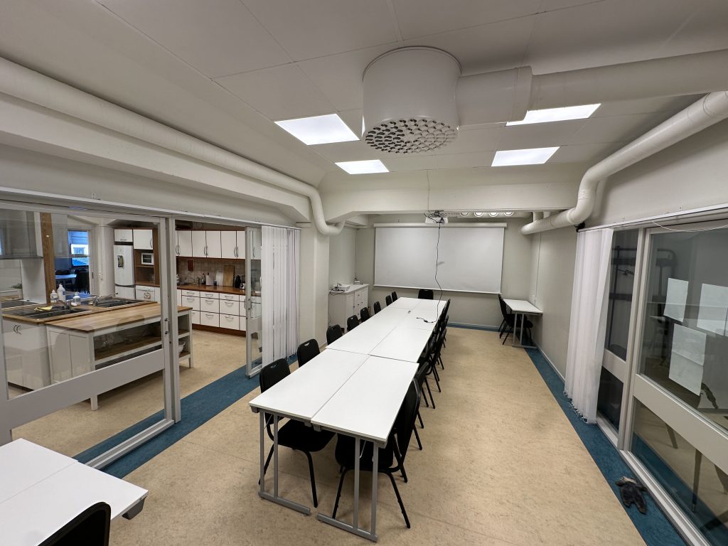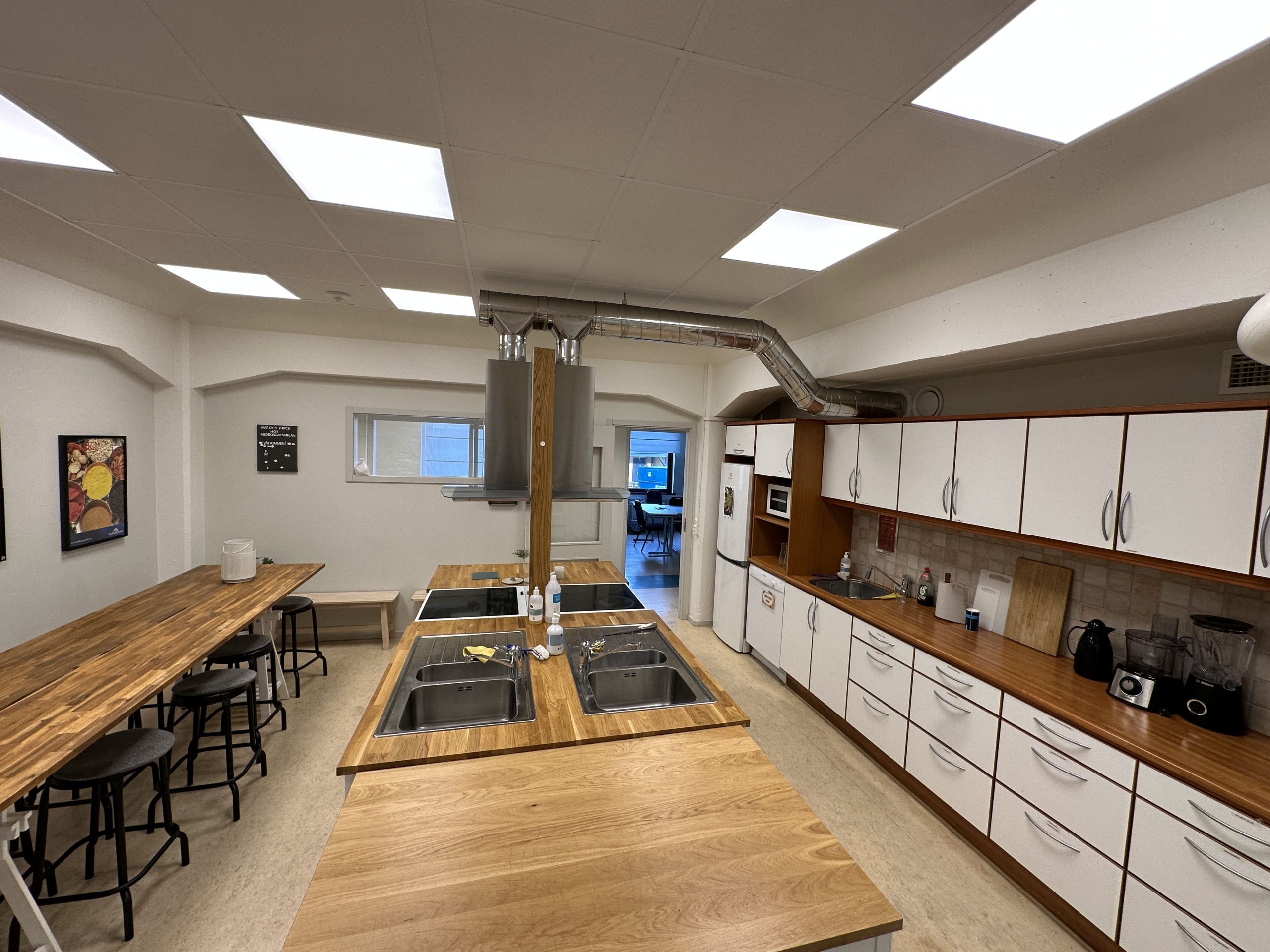 Det centralt placerade undervisningsköket ger ytterligare möjligheter för matlagningskurser, event eller servering i samband med verksamheten. Förvaringsmöjligheterna är mycket goda tack vare ett separat förråd för material och teknisk utrustning.