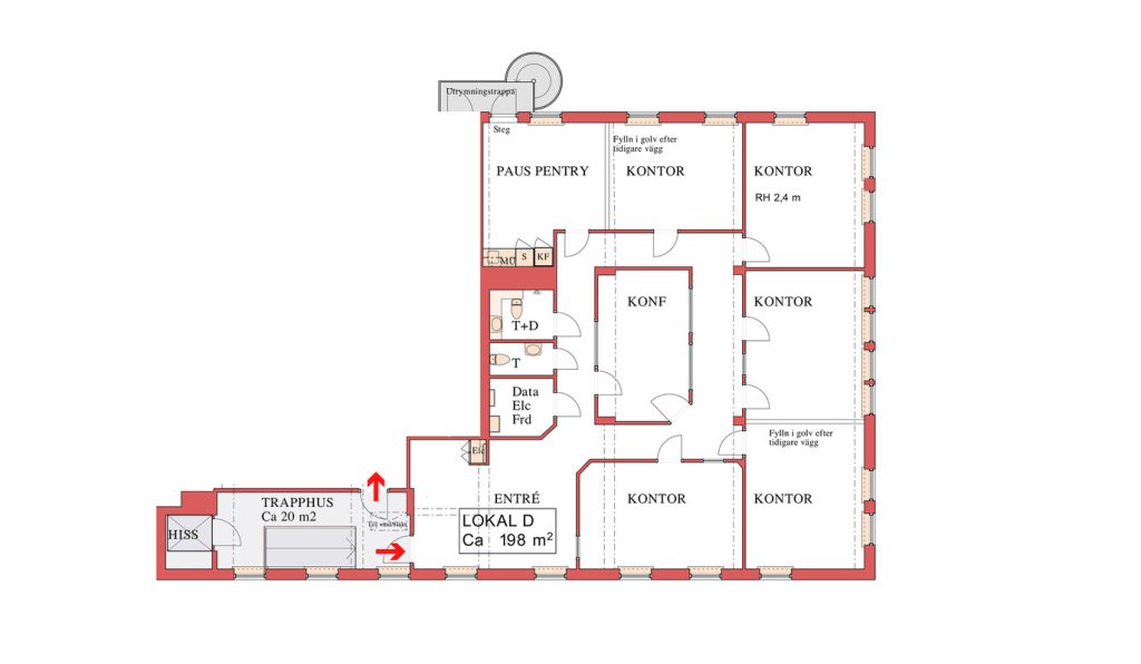 Lokalen är belägen på våning 2 med hiss och omfattar 198 m2.
